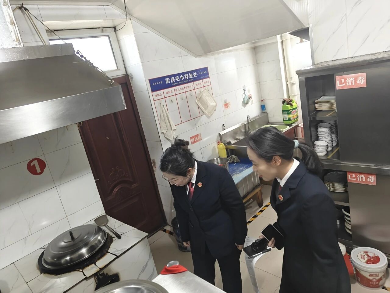 本次行动以“排查隐患、督促履职、保障安全”为目标,重点围绕餐饮商铺燃气使用安全关键环节进行实地查看。检察人员逐户走访,重点核查燃气安装规范性、燃气装置完好度、可燃气体报警装置配备使用、液化气合规使用及消防设施配置等情况,全面梳理安全风险隐患,固定相关证据线索。