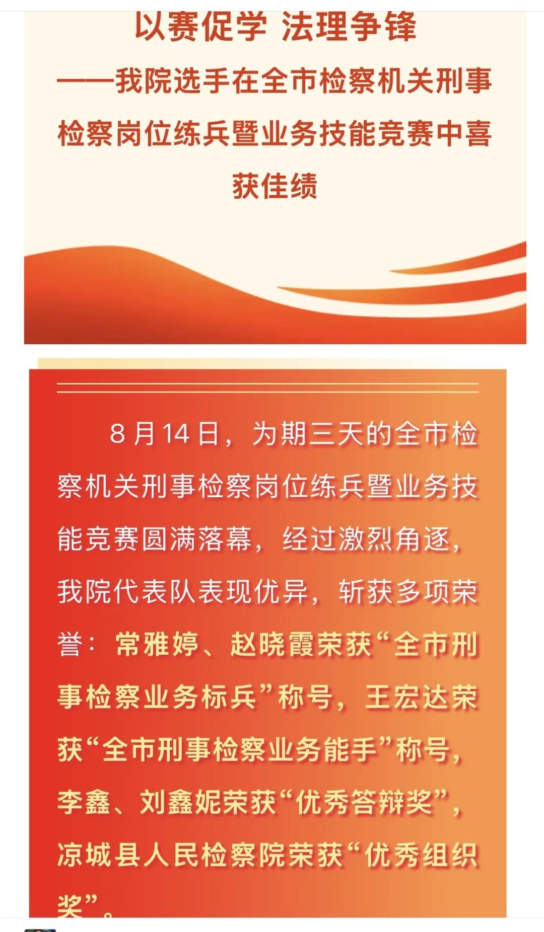 凝心聚力,硕果累累。一年来,部门成员坚守初心,齐心协力,在官网、微信公众号等平台累计发表信息54篇;刑检人员撰写的2篇论文获第三届“敖包检会”、第二届“鄂乌双城”理论研讨会优秀奖,1篇论文被《检察日报》刊登;在全市检察机关刑事检察岗位练兵暨业技能竞赛中,集体获得优秀组织奖1个,参赛5人获得单项奖。